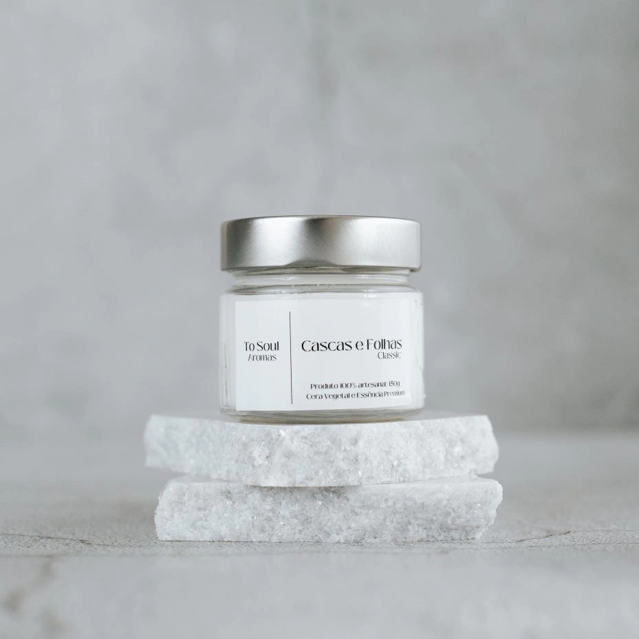 Vela Classic Cascas e Folhas fragrância natural e terrosa que preenche o ar, criando uma atmosfera de conexão com o ambiente ao seu redor. Cada acender desta vela é como um passeio sereno pela floresta, trazendo a sensação revigorante de estar em meio à natureza.